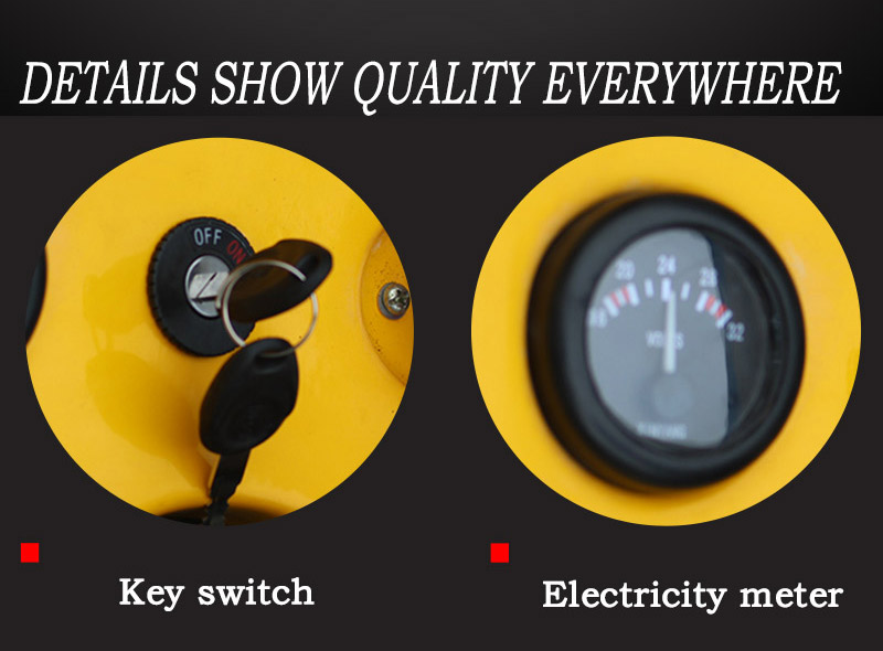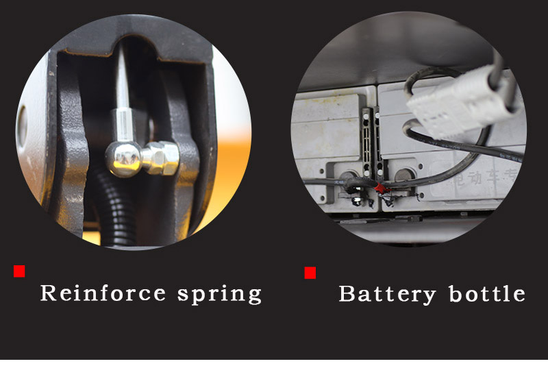 The electric driving handle of the ride on pallet jack is designed with clear functions, 99% fits the ergonomic design, the shock absorber stands the pedal, the operation is comfortable, and the fatigue is 0. The reverse reverse button of the parking-type ride on pallet truck improves the safety factor of 99%. The electric pallet mover adopts a polyurethane regenerative wheel with less impurities, heavy load and is not easy to damage. The motor of the ride on pallet jack is dust-proof and waterproof, which makes the brakes and motors more durable and reliable.