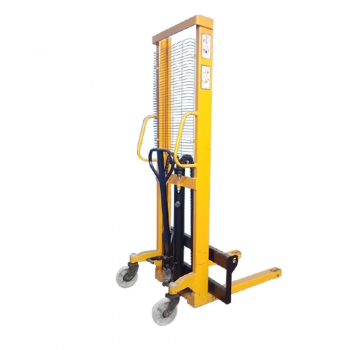 Manual hydraulic stacker uses double lifting chains for a smoother load. Manual hydraulic stacker can adjust the fork and adjust the width of the fork to meet various needs. Manual hydraulic stacker adopts high-strength pure steel guide wheel, which is wear-resistant and pressure-resistant.