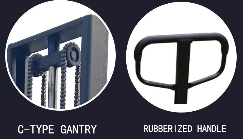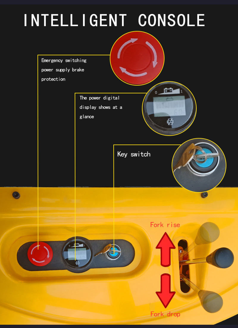 The electric stacker has a weight range of 1t-2t and a lifting height of 1-5m. Pallet stacker has low voltage protection function, which can protect the battery under low voltage condition and prolong its service life.