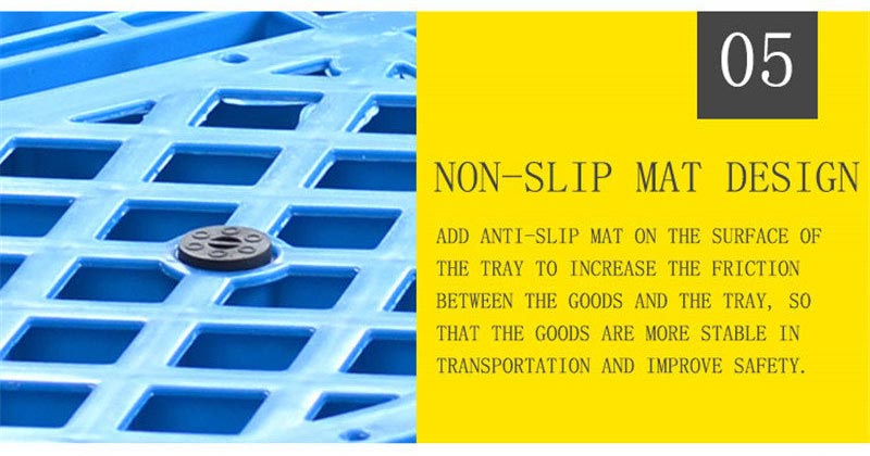 The surface of the table type blue chep pallets adopts reinforcing ribs, which is firmer, has greater bearing capacity, strong pressure resistance and long service life.- Price : -