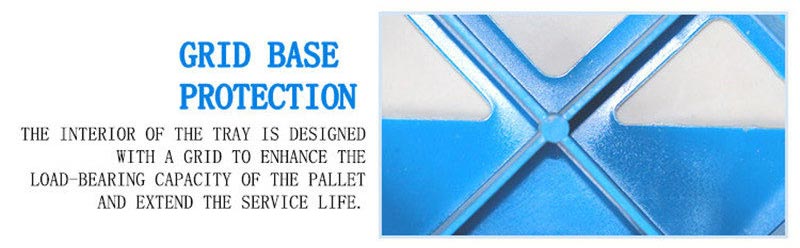 The grid nine-legged stackable pallets is resistant to falling and anti-aging, anti-freeze and high temperature, and easy to clean. The blue chep pallets has a simple appearance and a smooth surface.- Price : -