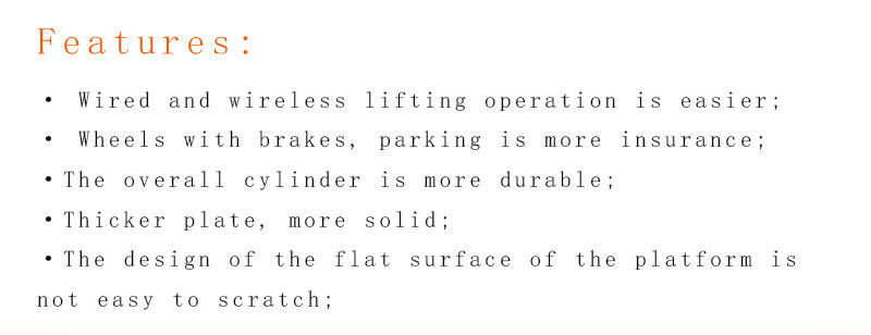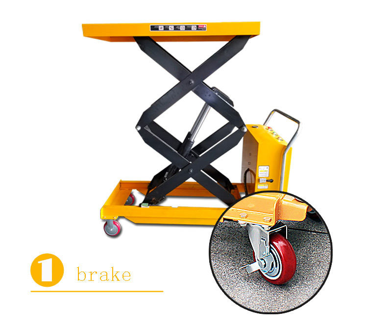 1 ton battery powered lift table uses an adjustable pressure valve that allows manual adjustment of the ascent speed. The electric mobile hydraulic scissor lifts adopts an integrated oil cylinder for safe lifting.