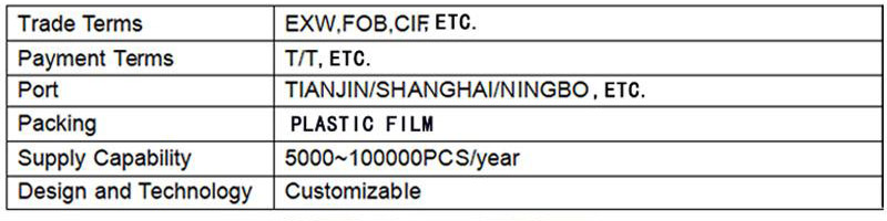 • PaymentTerms : T/T、L/C、Western Union、Alipay