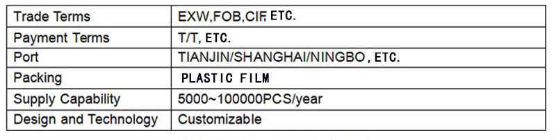 - PaymentTerms : T/T、L/C、Western Union、Alipay