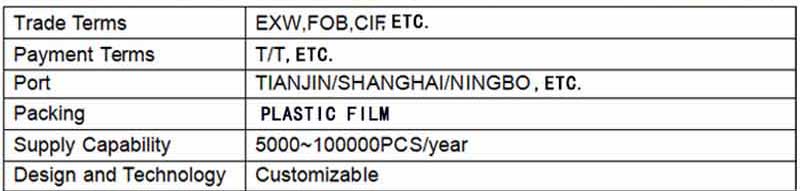 - PaymentTerms : T/T、L/C、Western Union、Alipay