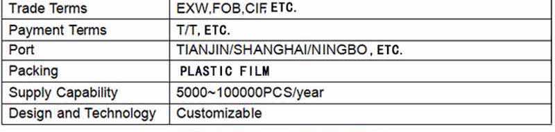 - PaymentTerms : T/T、L/C、Western Union、Alipay