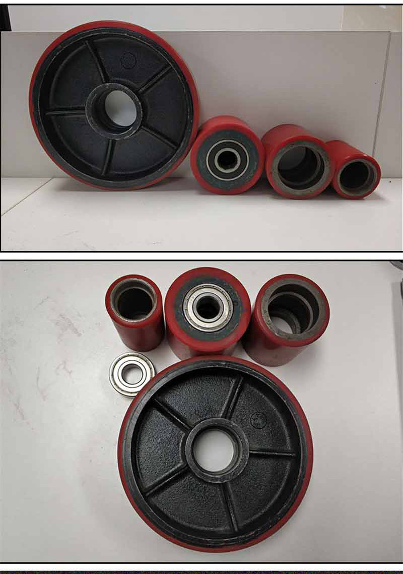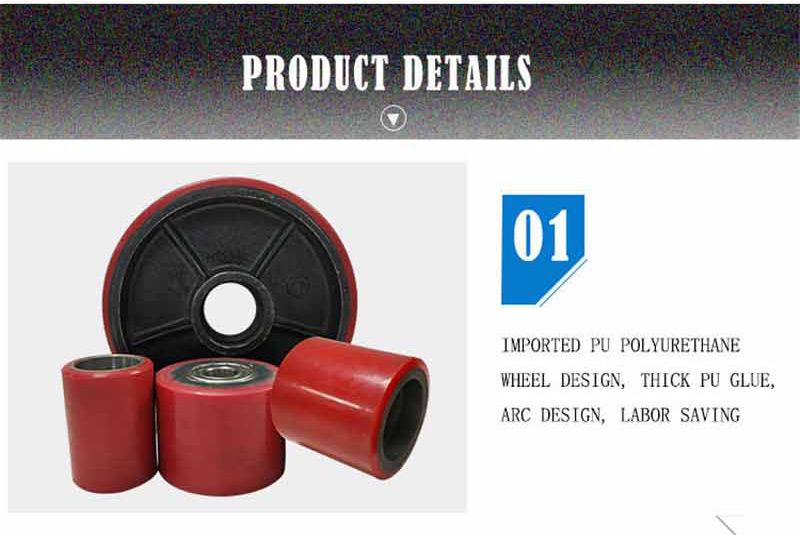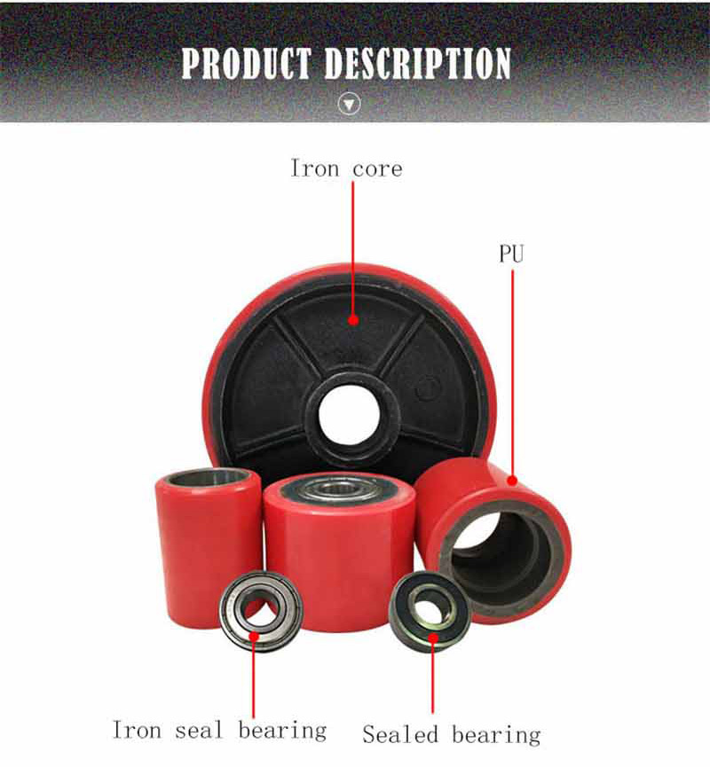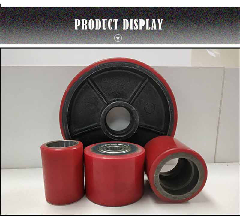 Pallet truck parts manual hydraulic pallet truck electric forklift parts PU polyurethane wheel custom.Polyurethane wheel features quiet and environmentally friendly, more wear-resistant.