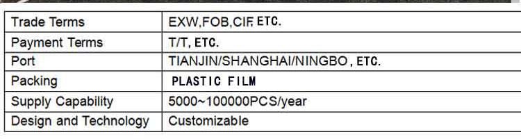 - PaymentTerms : T/T、L/C、Western Union、Alipay