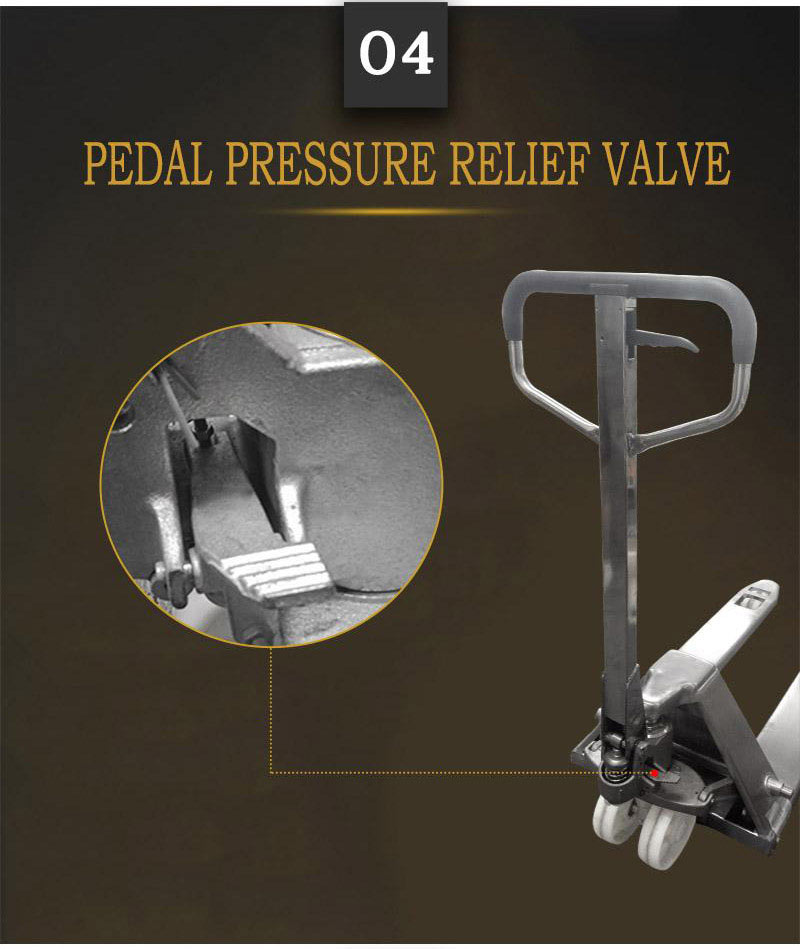 Pallet hand truck is coated with epoxy powder to prevent debris and oxidation. The pallet jack manual is robotically welded and durable for up to 10 years. The pallet hand truck uses a leak-proof hydraulic system that can be used for up to 10 years. The pallet jack manual's relief valve provides overload protection to effectively avoid overloading.