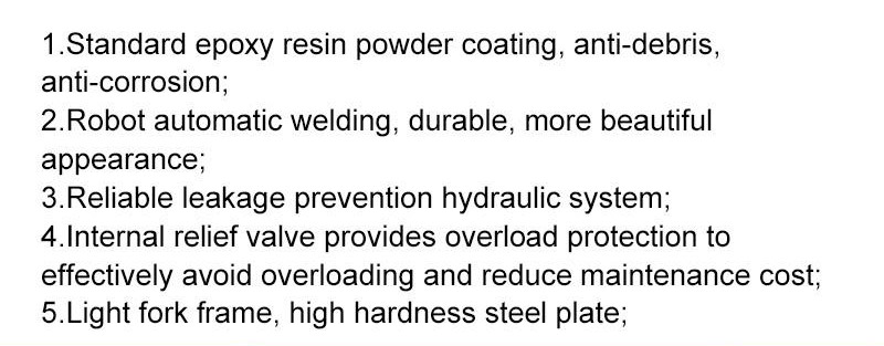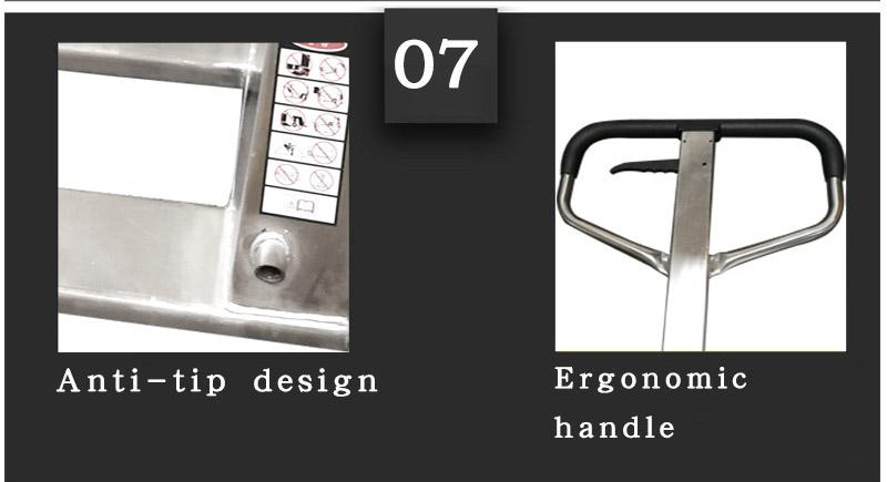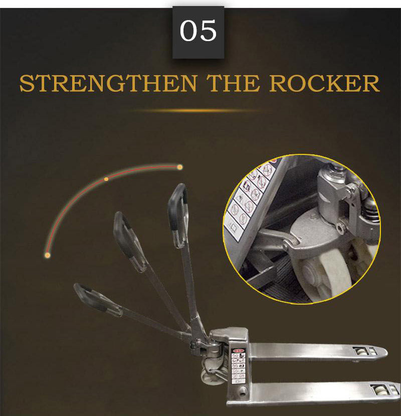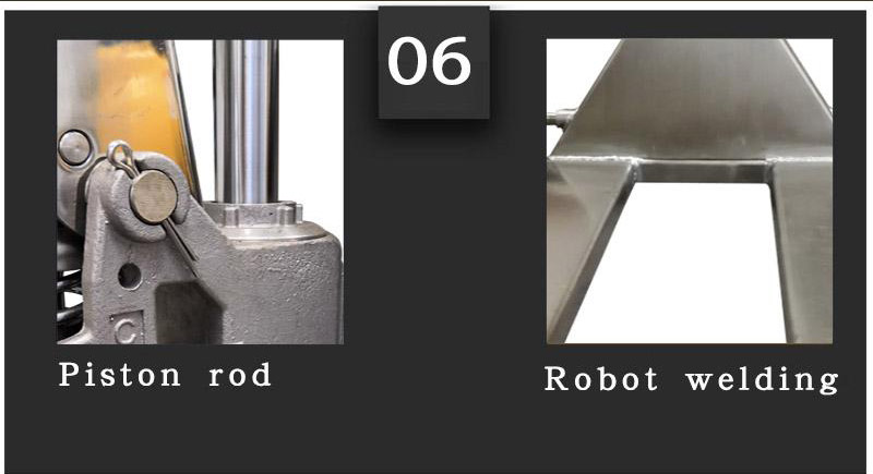 Pallet hand truck is coated with epoxy powder to prevent debris and oxidation. The pallet jack manual is robotically welded and durable for up to 10 years. The pallet hand truck uses a leak-proof hydraulic system that can be used for up to 10 years.