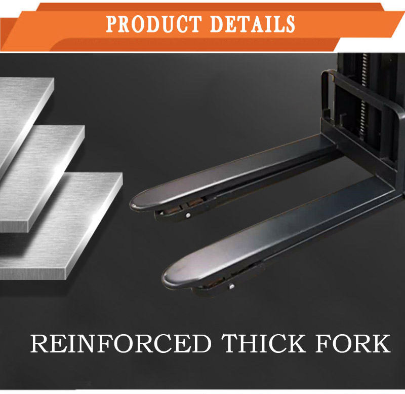 The walk behind pallet stacker is designed with high-strength structure, and the high-quality cylinder has a long service life, which reduces maintenance costs. The walk behind forklift adopts special drive and wear-resistant wheels, and has strong bearing capacity.