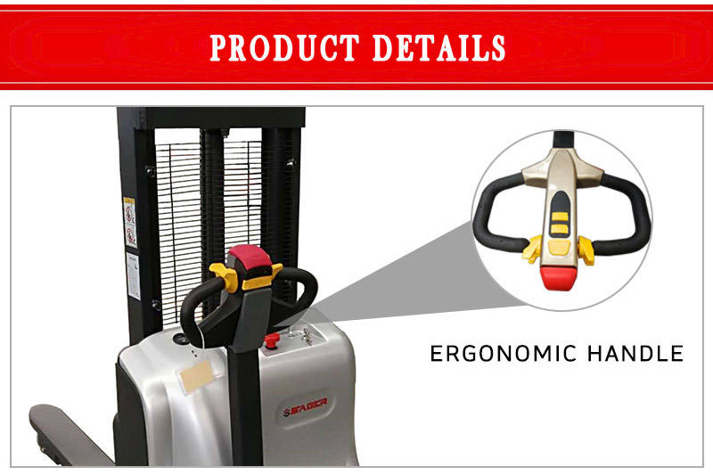 The walking type full electric stacker rechargeable stacker forklift can automatically walk and automatically lift. The powered pallet stacker is equipped with an EPS electronic power steering system for flexible operation. The walkie stacker forklift uses high-quality cylinders for long service life and reduced maintenance costs.